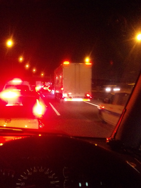 よく見たら、遥か先で赤色灯が回ってる…